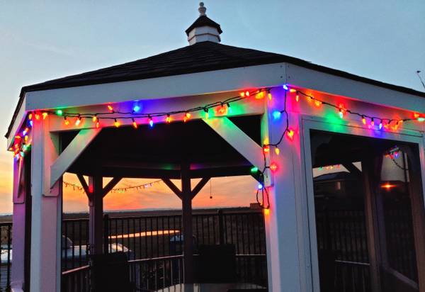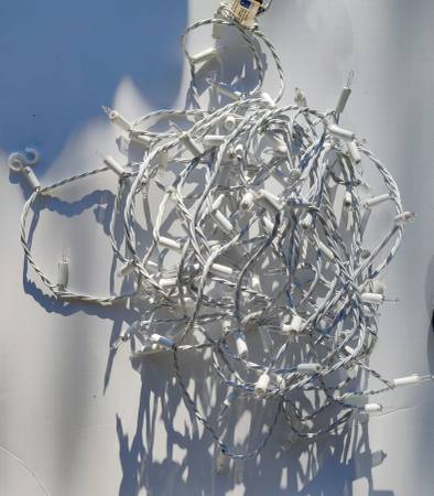 2 Sets of string of straight colorful Christmas lights perfect for decorating around a gazebo, over a fence, around a tree etc. Each set is approximately 16 feet. Each set is $15.