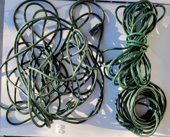 Multiple green extension heavy duty cords waterproof from 25 feet to 40 feet. From $12 to $18