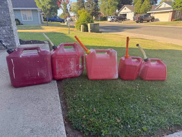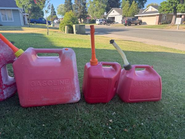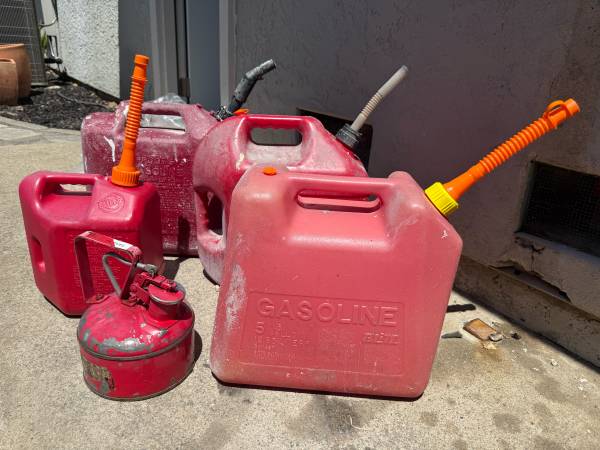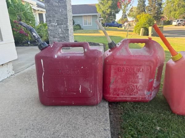 2 gallon, 2.5 gallon and 5 gallon red gasoline fuel containers variety of used red gasoline containers 5 gallon containers - $20 each (3 available) 2 gallon container - $12 each (1 available) 2.5...