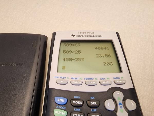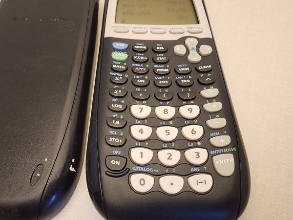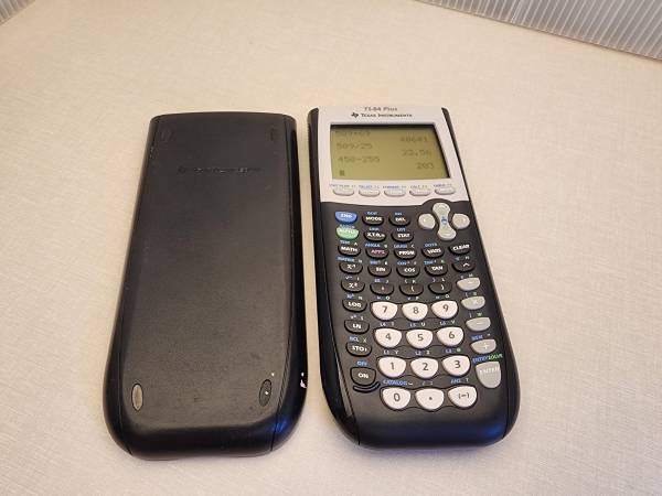 Texas Instruments Ti-84 Plus Graphing Scientific Calculator In good and clean pre owned condition. Works great. Comes with new batteries. Sell for $45. Cash only. No trades.