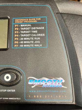 Smoothe Fitness 5.15P CASH ONLY GREAT CONDITION Pictures show all functions Heart monitor and pulse rate Treadmill portion lifts for storage Has emergency stop Heavy….if you purchase, you supply all...