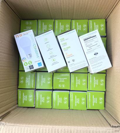 Brand new in the boxes! See picture. If you are doing construction or remodel this box of 29 light bulbs just might save the day. (We bought a ton of them and have 29 extra that were not needed for our project.) See picture for details and let me know if any questions.