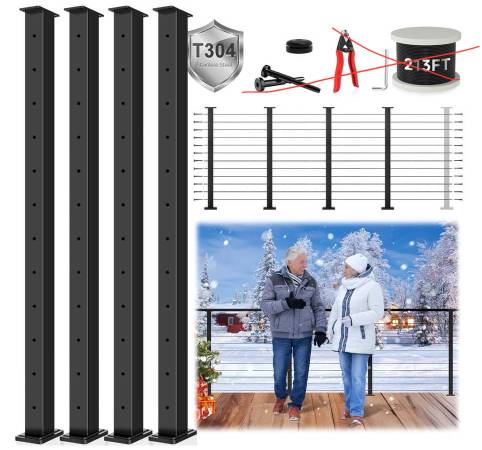 42" 12ft-16ft T304 Stainless Steel Cable Railing Post Kit (Flexible DIY 1+1) - 4 Level Drilled Posts, Sufficient 213ft 1/8" Grommets (No Handrail) for Decks Open box! Missing cable and cable...