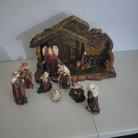 Balsam Hill Nativity Set. Stable number 4000108 plus full set of figurines. This is a highly sought after, no longer available set. Paid $400 See pics, any white spots are Styrofoam. no chips or breaks. Pick up only. CASH ONLY. No electronic payments. I'm Available weekdays 4:30pm to 8:00 pm and most Saturdays and Sundays all day. Text to show contact info
