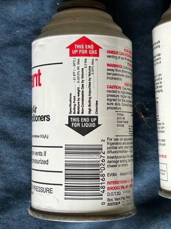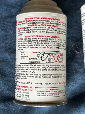 2 CANS OF 12oz FREON 12 REFRIGERANT. $100