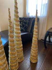 Elegant gold spiral design, perfect for home decor. Christmas tree cones for sale Excellent condition Can be sold together or separately Email or text for more information and offer the price