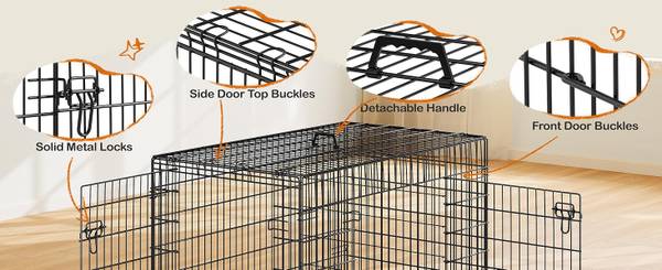 This black metal dog crate is 24" x 18" x 19" with a door on the long side and another on the short side. It is for a small to medium sized dog or cat. It can be disassembled but not collapsed with...