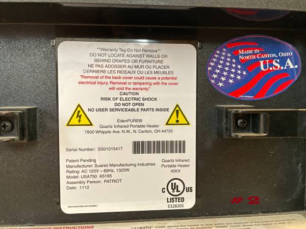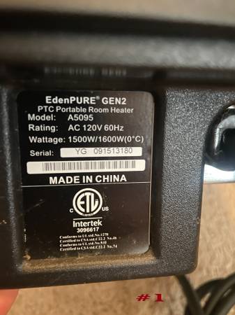1) Eden Pure Gen 2 Portable Heater Model A5095