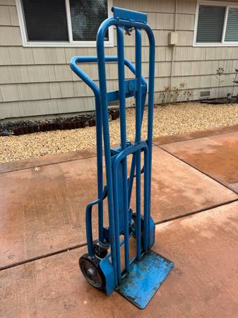 3-in-1 Convertible Hand Truck Like new condition 800 lbs. capacity 14-gauge steel Blue powder coat finish 45 degree tilt pick up