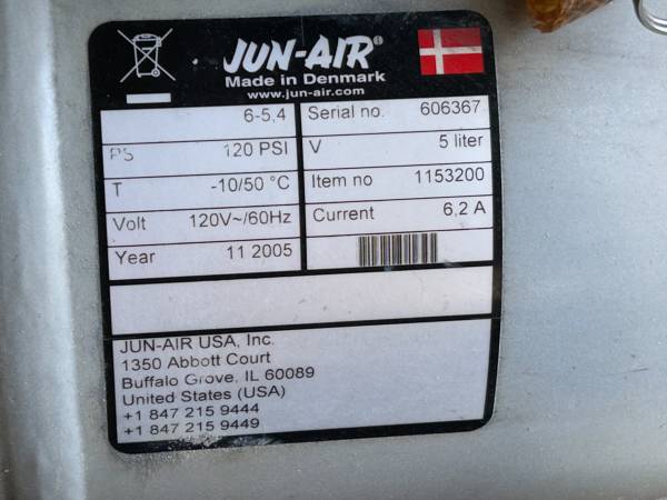 Jun-Air Series 6-5 Air Compressor. In excellent working condition. $300
