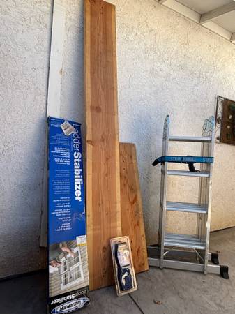 Also comes with ladder stabilizer and rubber foot pads for the stabilizer (these have never been used).
