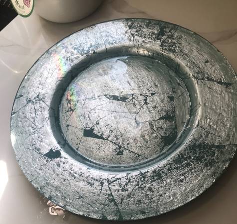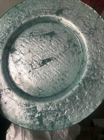 Stunning color charger plates - 6 total - have been in storage, but I do not believe they have ever been used. 13" diameter. Cash Only / Pickup Only (email to arrange a specific time for pick up)...