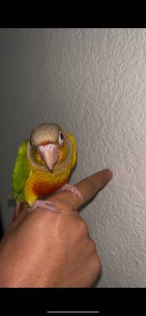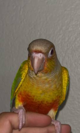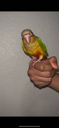 I have this baby pineapple green cheek conure looking for it’s new home🏡 Tame✅ Message me for more info at