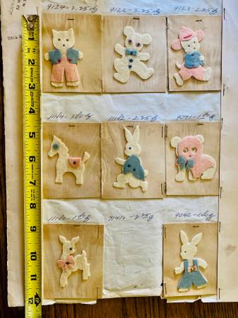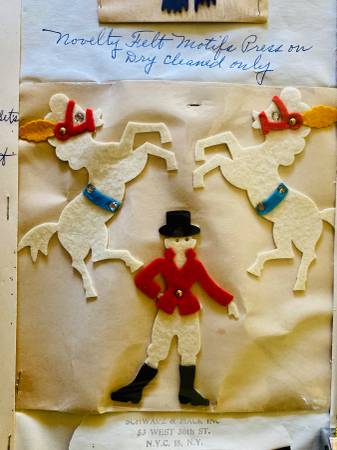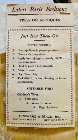 RARE, 46 ANTIQUE NEW OLD STOCK, 1940s SCHWARZ & MACK PRESS ON APPLIQUES , LATEST PARIS FASHIONS. SEWING CRAFTS COLLECTABLES. ALL FOR $70