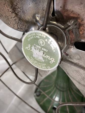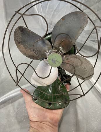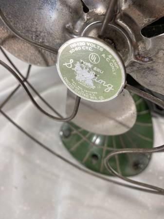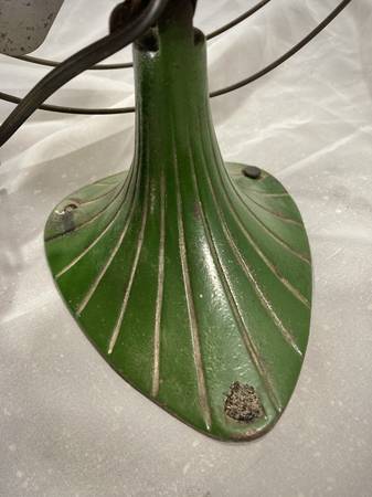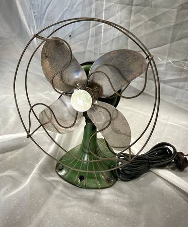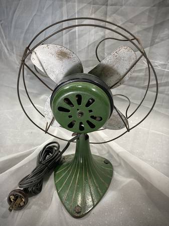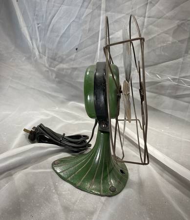 Gorgeous little art deco / art nouveau style Sterling desk fan. Probably from the 40's, this little fan runs like a champ. I believe everything is original from the paint to the power cord. Check photos for dimensions.