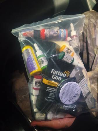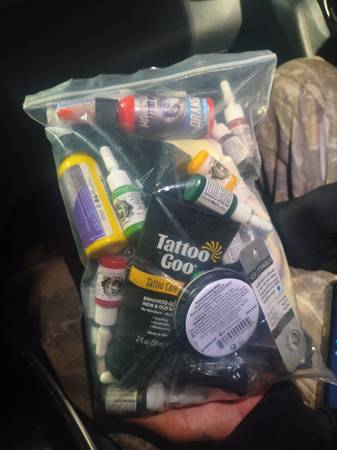 I have a handheld tattoo gun with everything you need, needles, ink, transfer paper, tattoo goo and lotion.
