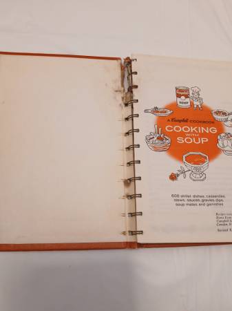 1) A Campbell Cookbook: Cooking With Soup - Revised Edition, 1969. Hard Cover w/ spiral. Wear to spine and cover (images attached). 608 recipes. 200 pgs.