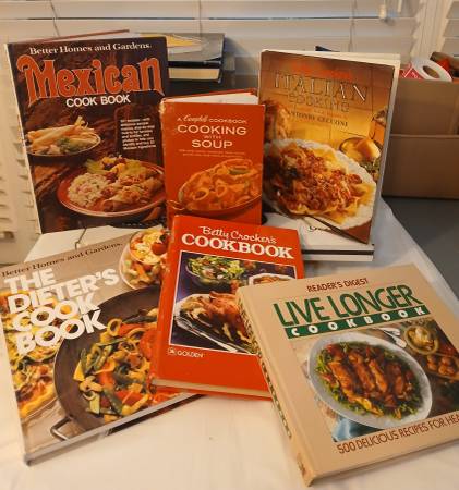Below please find a brief description of each cookbook's general condition, title, number of pages, year of release, etc.