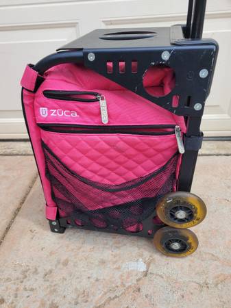 Zuca Sport Pink Stuffed Insert Black Frame 17" Roller Luggage with Pink Bag
