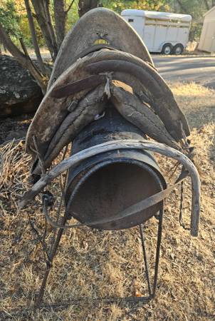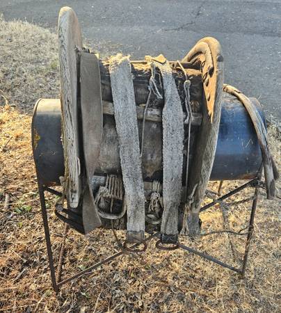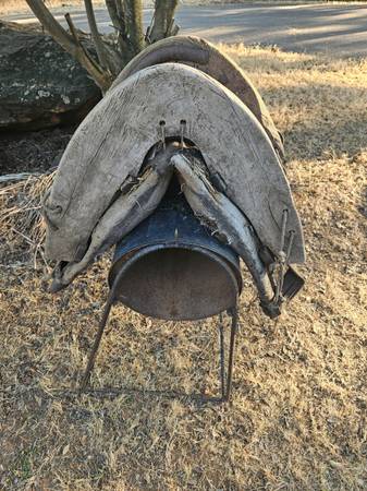 One of a kind Yak Saddle. A great conversation piece, metal stand included. Display only Asking $40.00 (OBO) Horse, vintage, ranch, farmhouse, animals, riding, cattle, cowboy.