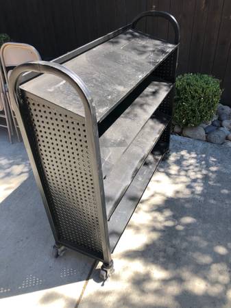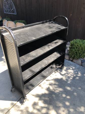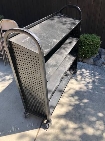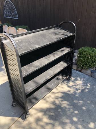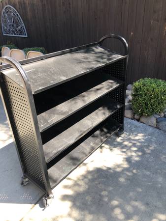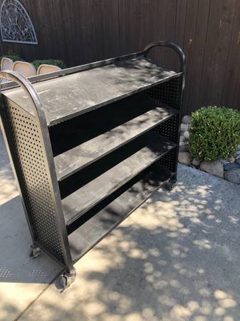 Heavy-Duty Garage Rack/Cart Stainless Steel on Wheels. Painted black. 4 Shelves. 49"w. 15"d. 47 1/2"h. 10" between shelves. In very good condition $100 Cash Only. Located in Vacaville Call or Text