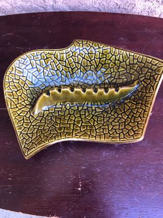Vintage Ceramic MCM Leaf Ash Tray Maurice of California, LW29 Holds 7 smokes. Approx. 11" Long 8"deep. 2" tall. In excellent condition. $30 Cash Only. Located in Vacaville Call or Text