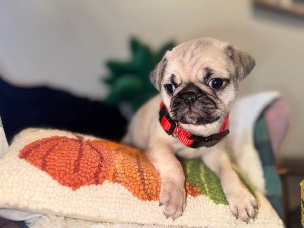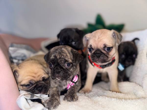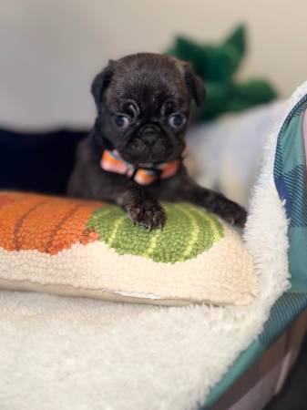 Beautiful Pug 8 weeks holiday babies. Shot records dewormed up to date.