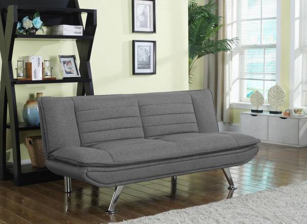 8. $325- With a sleek, modern silhouette, this sofa bed adds contemporary glamour to any living space. Featuring pillow-top seating over sinuous spring decking with high-density foam, it creates a comfortable space for leisurely relaxation. Its attractive look is enhanced by tufted stitching and high-shine metal legs finished in chrome. Soft, grey, woven fabric upholstery pulls it together with style and grace. It easily converts from sofa to bed for a variety of cozy, convenient uses.