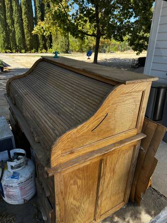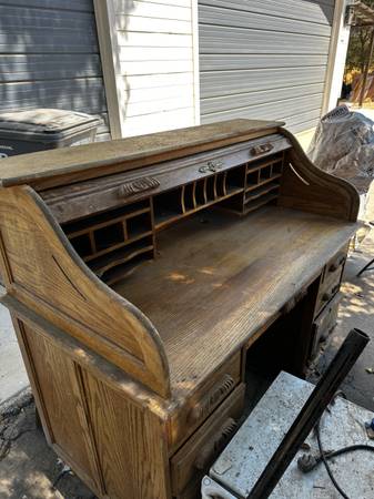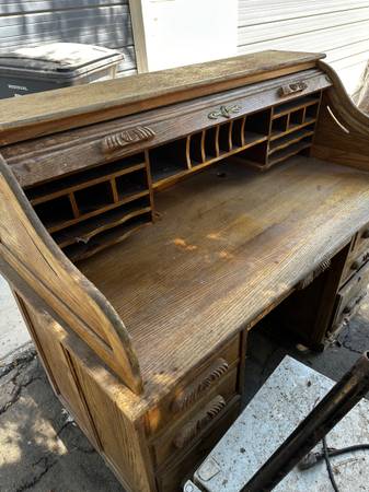 Free- Antique oak desk with roll up door and drawers. Text me 916-79nine-900eight.