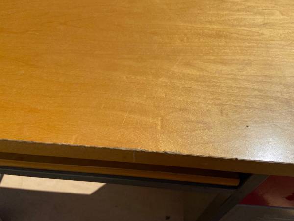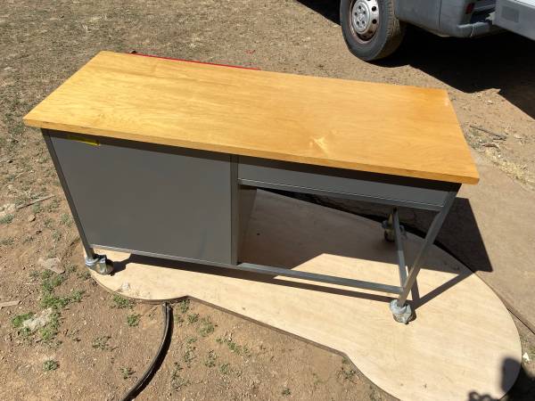 Pottery barn desk set Desk dimensions 55”/30”/2”30” Side table Pick up in valley Springs Some scuffs and marks Vintage desk Metal Desk Office furniture Metal table Side table End table
