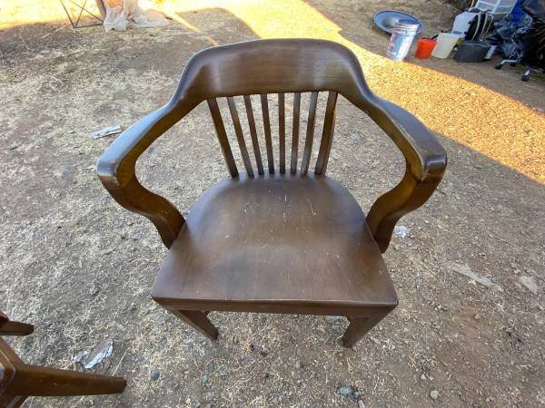 Need refinishing Antique banker chairs Selling as a pair Pick up in valley Springs Solid wood Vintage mid century modern bankers chairs set Of 2 Antique chair Desk chairs Office chair Lounge chairs