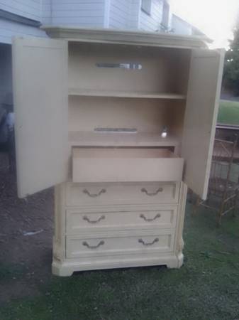 Nice armoire. About 6 ft. tall. I also have a matching 4 post queen bed frame, posted separately.
