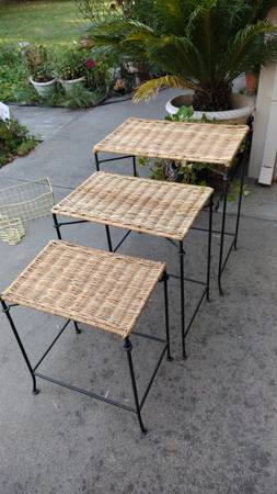 Iron & Wicker Mid-Century Nesting Tables set 3