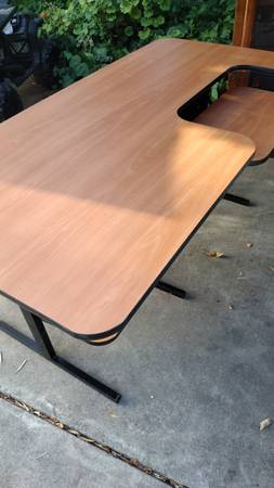 Selling a very sturdy and functional desk, ideal for a home office, gaming, or a serious crafting/sewing setup. The desk features a large workspace with a unique ergonomic design.