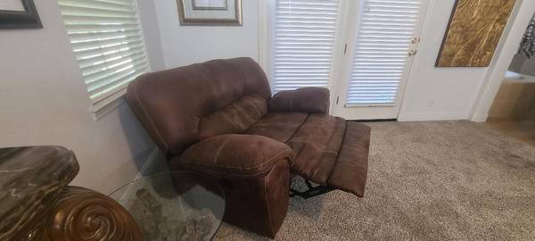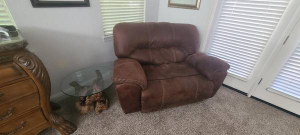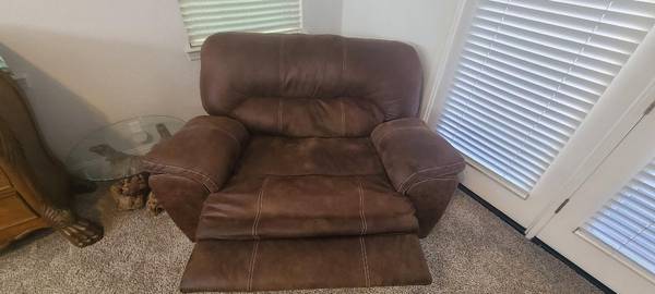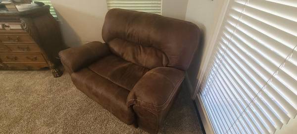 Oversize Wallhugger Recliner Chair/Loveseat - Leatherlike Fabric Great condition, very cozy. Soft fabric 59"W 38"H x38"D $160 Thanks, Stan