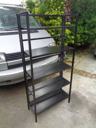 Black Metal Folding Bookshelf 58" tall by 27.5" wide by 12" deep , $100.
