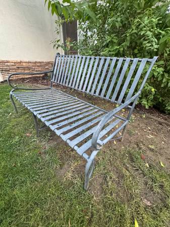 For sale is a heavy all-metal outdoor bench, solid and weather-resistant. Great for a patio, porch, or garden seating area.