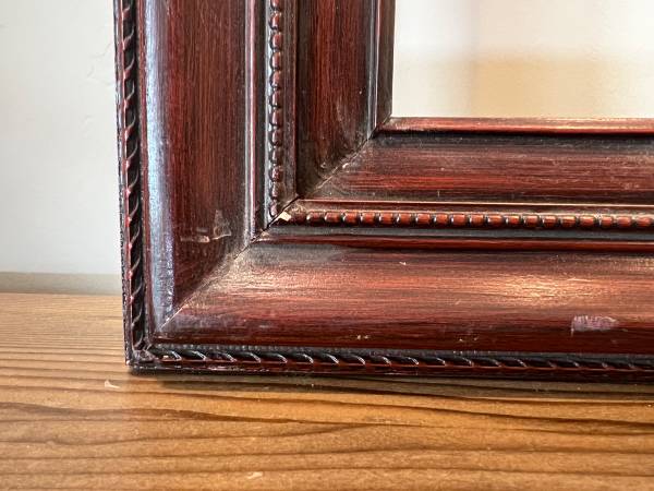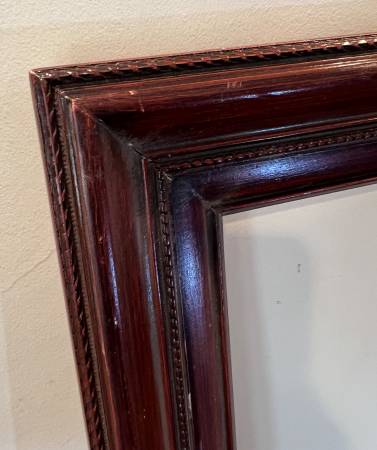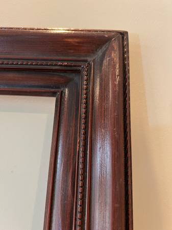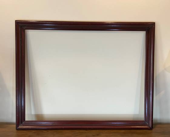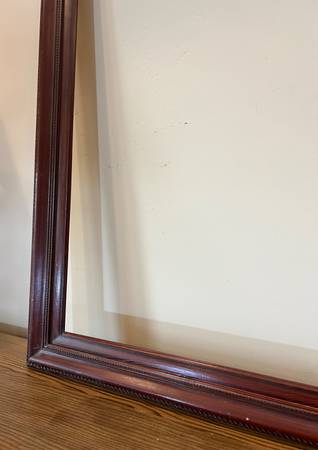 Lovely vintage Mahogany Wood Frame that fits art or a mirror that is 30 x 40 inches. Outside frame dimensions: 35.5 x 45.25 x 1.25 inches deep. The width of the frame moulding is 3 inches wide. #400