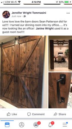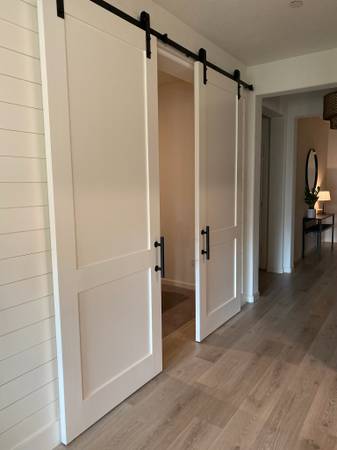 Add privacy for the bathroom, close in the loft or turn a dining room into an office....Beautiful doors that I build with my 3 teenage sons :-) We have built / installed over 400 doors since 2015 (from Reno to San Francisco). From modern homes to country, executive homes and even real exterior barns- they look great in all! We provide professional on-time installation. For more ideas and inspiration visit www.barndoors.info