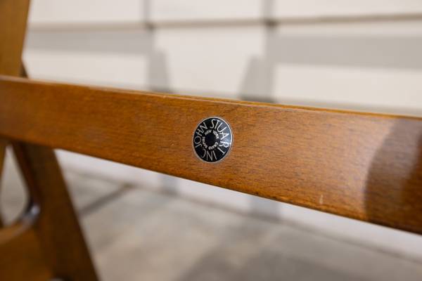 Pair of early Danish modern lounge chairs in solid beech with original finish—warm patina, no breaks or repairs, and light scuffs consistent with age. Designed by Ole Wanscher and produced by France & Daverkosen before their transition to France & Søn. Both chairs retain factory labels: France & Daverkosen gold foil and John Stuart Inc. medallions.