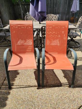 Material in good shape. Stackable. 2 tan and 2 orange Buy all 4 for $10 or $8 per pair