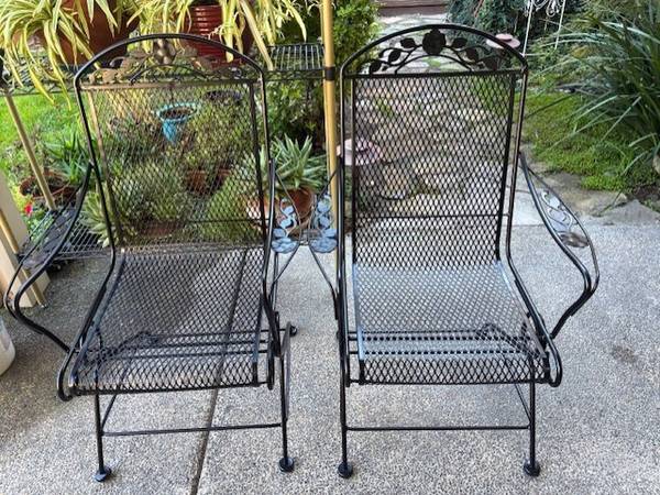 Nice Wrought iron patio chairs with small table in Excellent condition No rust or broken This is a heavy-duty set Firm on price, Cash only