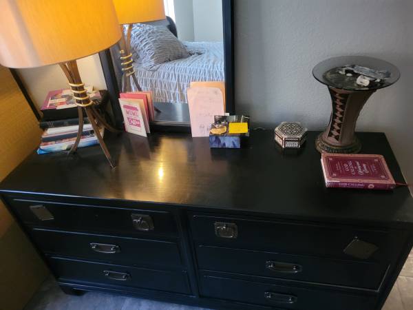 Solid wood Davis Cabinet Company lovely six drawer solid wood black dresser with mirror. Serious inquiries only. No low ballers. Thank you! May be able to deliver Rancho Murieta Elk Grove Galt Lodi