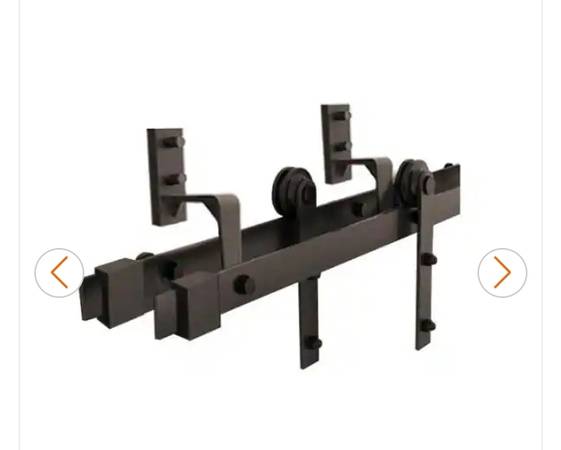 WHITE STAIN FINISH TRACKING ON HEAVY-GUAGE SATIN BLACK HARDWARE FOR A GREAT LOOKING, HIGH-FUNCTIONING BARN DOOR WALL.