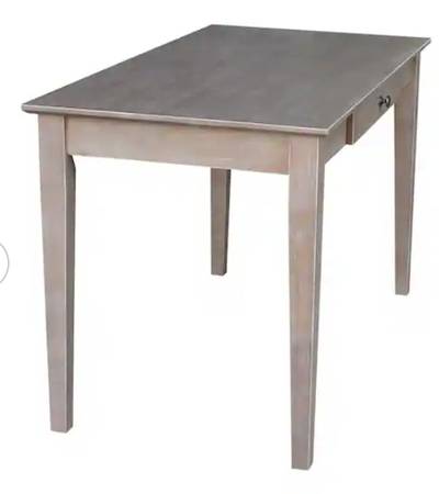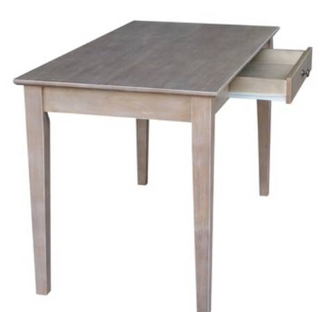 NEW IN BOX JOHN THOMAS HOME ACCENTS COLLECTION SOLID WOOD VINTAGE STYLE STUDENT DESK PERFECT FOR AN ENTRY HALL, SOFA TABLE AND MORE. FINISHED TAUPE/,GREYWASH. VERY WELL MADE VINTAGE CLASSIC. SEE...