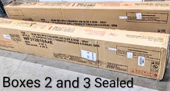 A COMPLETE BEDROOM ALL IN ONE WELL-DESIGNED SET. IT IS ENTIRELY REASONABLE, IN FACT, TO SAY IT IS COMPRISED OF A SOLID WOOD TWIN BUNKBED, A 5-DRAWER CHEST OF DRAWERS, A 2-DRAWER DESK WITH HUTCH, THE SAFETY OF SOLID STAIRS VERSES A LADDER AND THE ADDED FUN OF A STURDY SLIDE. IT'S A MOUTHFUL, FOR SURE, BUT IT'S ALL THERE