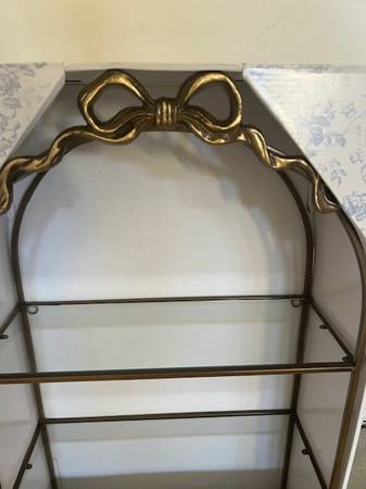 Brand new viral Vivianne Taylor bow shelf with gold finish. Glass shelving 3 glass shelves and bow detail. Product is new and perfect for any type of space to hang. Dimensions: 15” X 27”