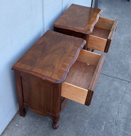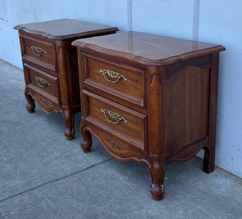 Hello we are selling a French Provincial Two Drawer Nightstand , it is in good condition. Schedule appointment by email.