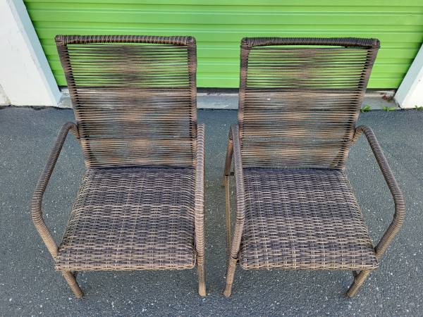 Create a comfortable seating spot in your outdoor space with the Granby 2-Pack Padded Wicker Patio Dining Chairs from Threshold. This two-pack of charming wicker patio chairs are made with weather-resistant materials for convenient use outside. Each chair has a thick seat, a high backrest and raised armrests for enhanced comfort while dining, reading or relaxing in your garden, backyard, sunroom or on the deck. In a versatile wicker finish, these outdoor chairs make a great addition to a variety of patio decor schemes, and they pair perfectly with a wicker side table to form a restful refuge for two.