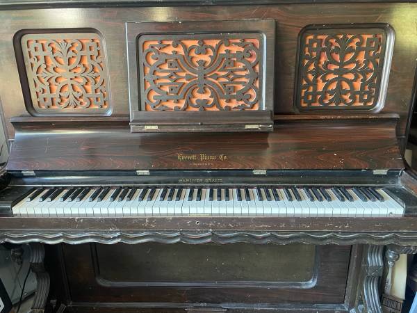Get all the great sound of a baby grand in an upright piano. Beautiful rich tones. Quality brand Everett out of Boston. The piano is over 120 years old but is still in good condition. Other than a couple of sticky keys it plays great.